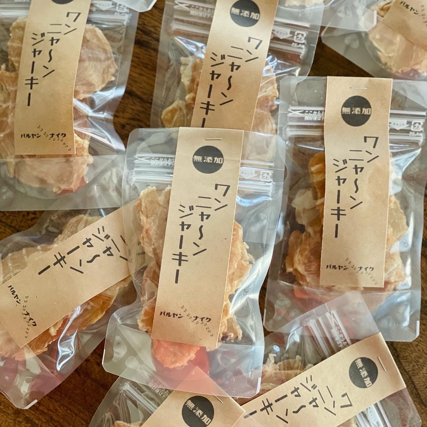 ワンちゃんネコちゃんに定評のあるチキンジャーキー。心を込めて手作りしている無添加の味。