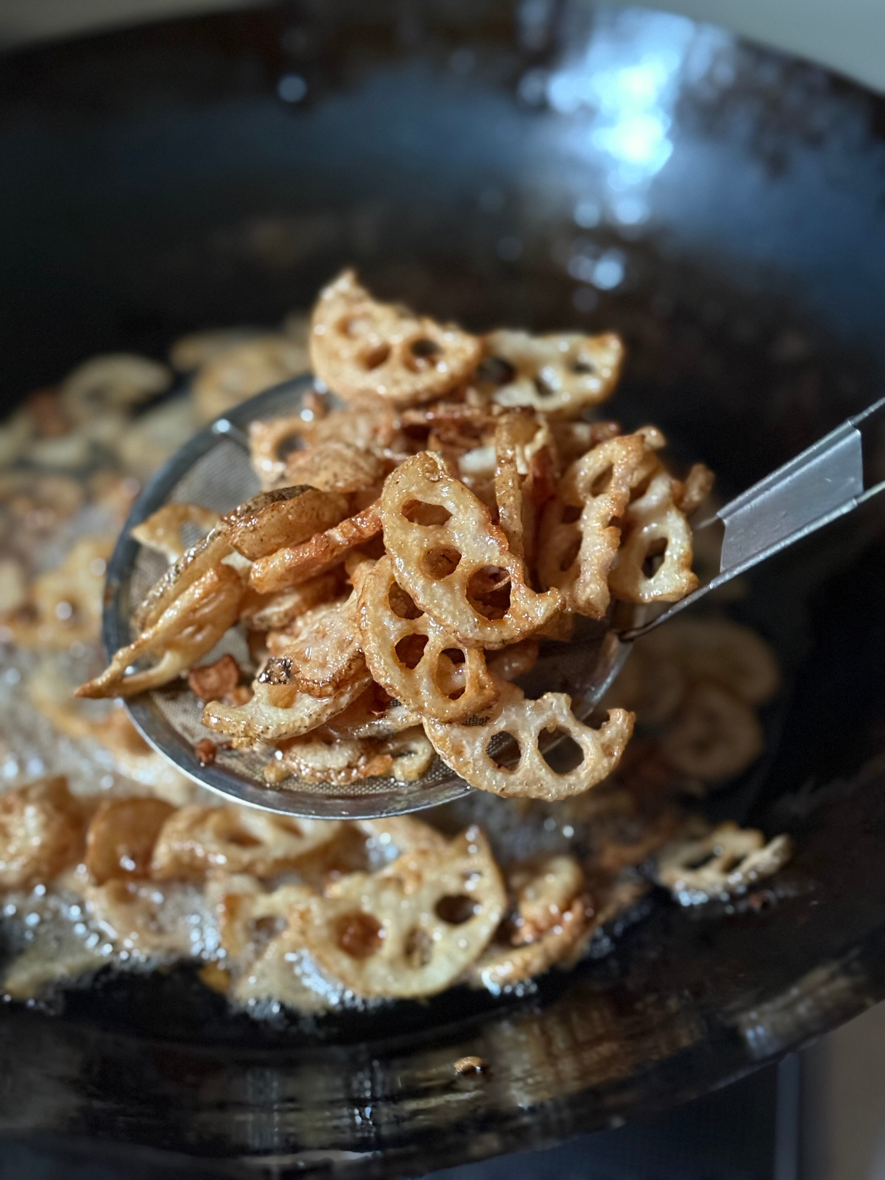 旬を迎えた蓮根を米油で素揚げにし香ばしさを